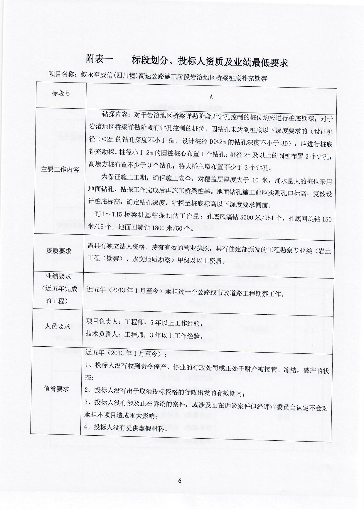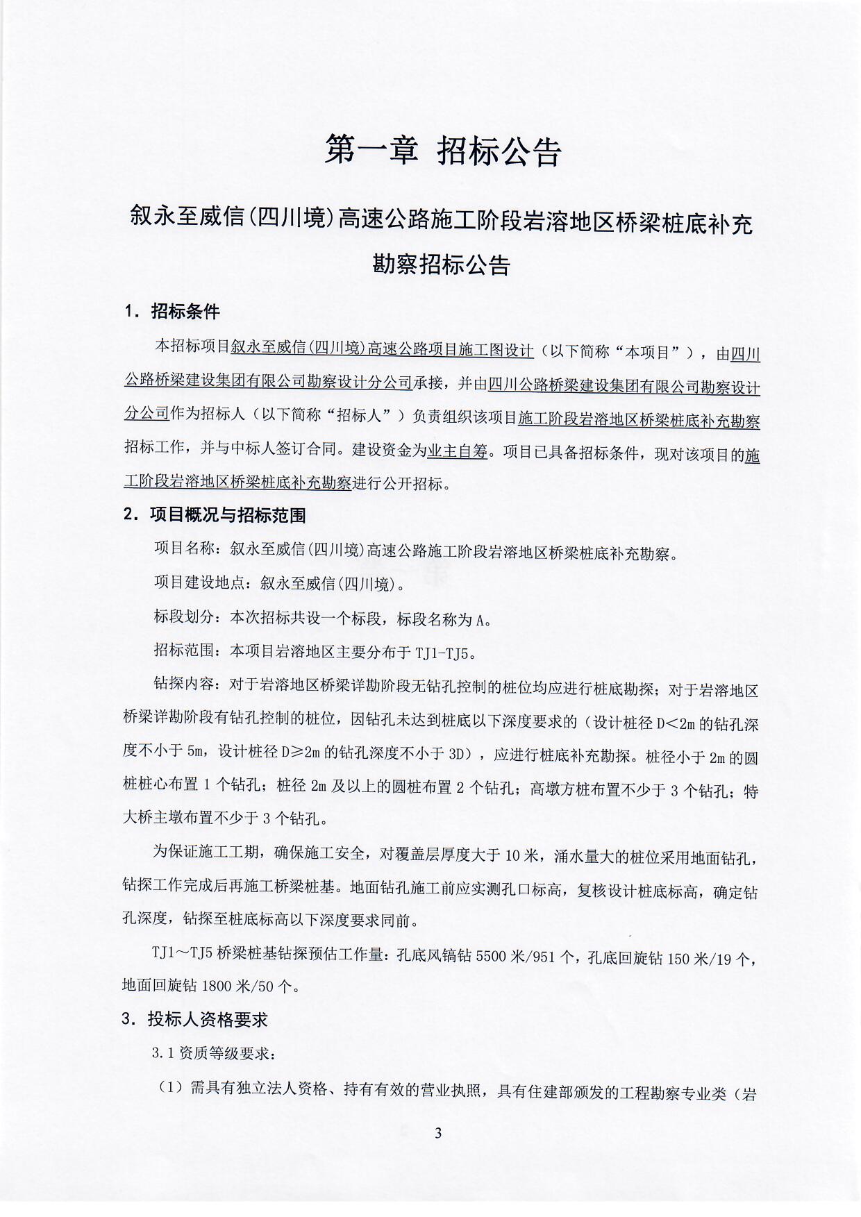 敘永至威信(四川境)高速公路施工階段巖溶地區(qū)橋梁樁底補(bǔ)充勘察招標(biāo)公告