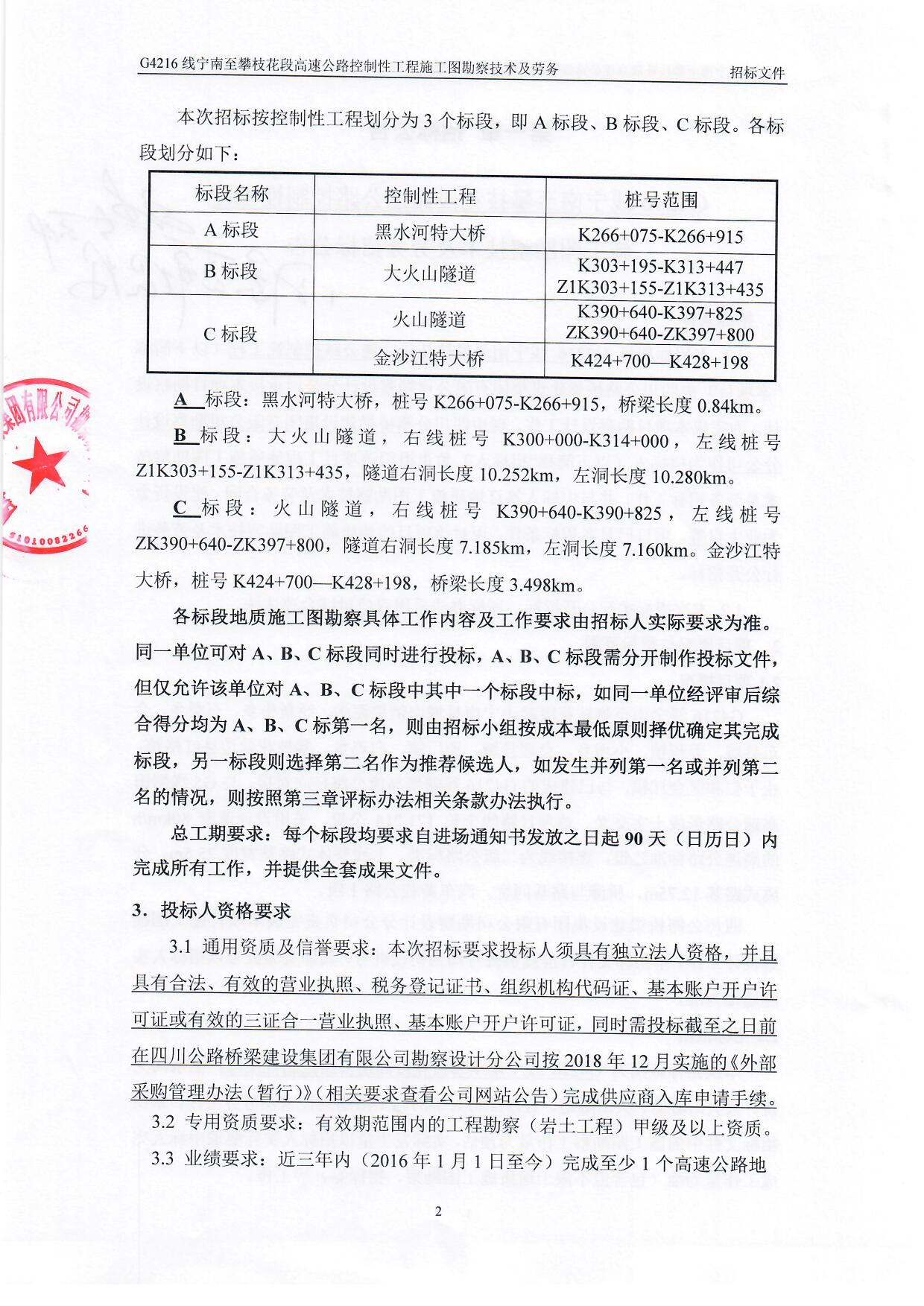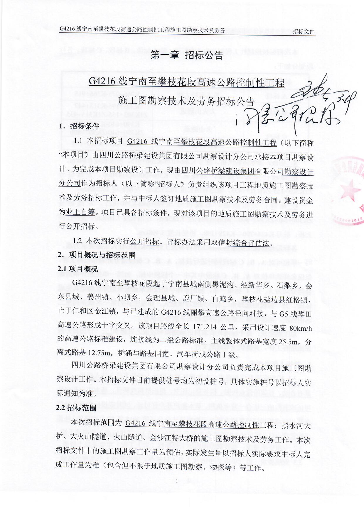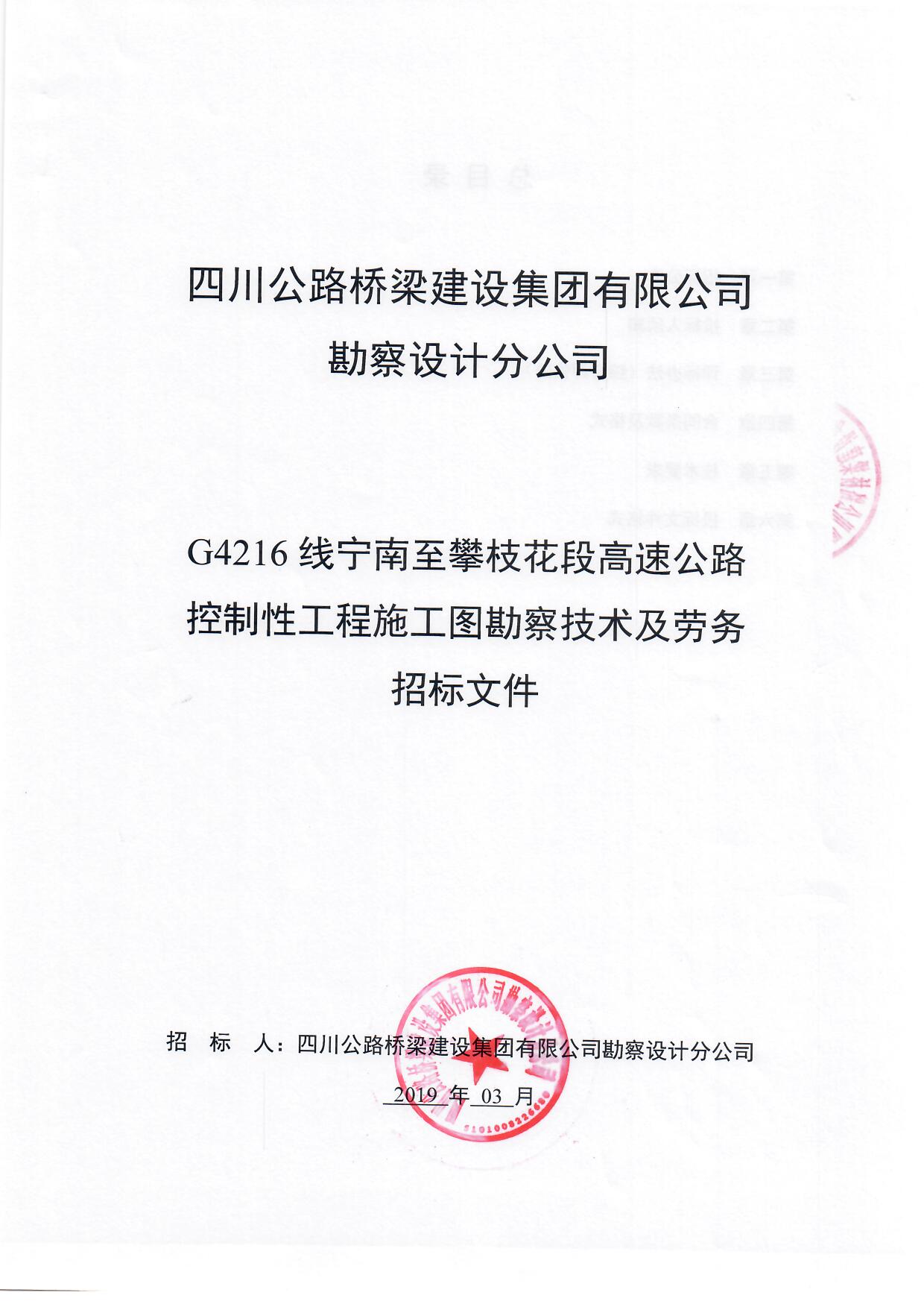 G4216線寧南至攀枝花段高速公路控制性工程施工圖勘察招標(biāo)公告