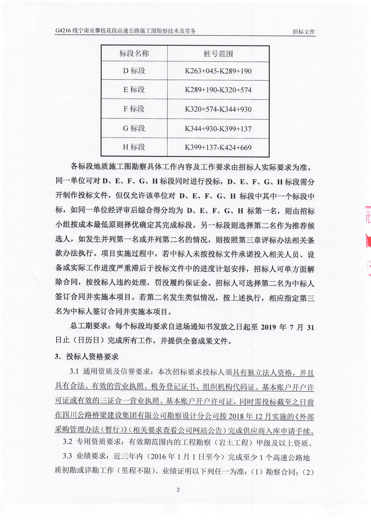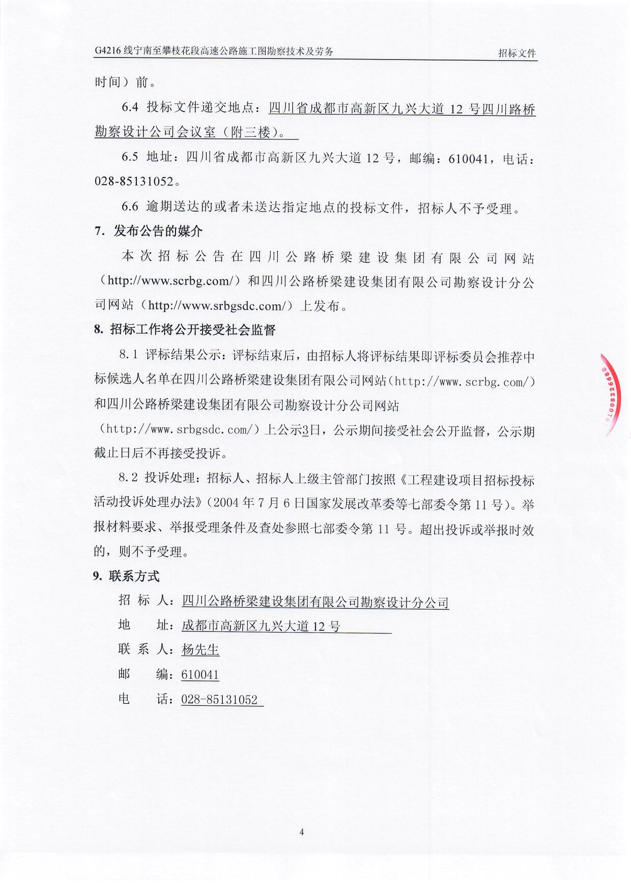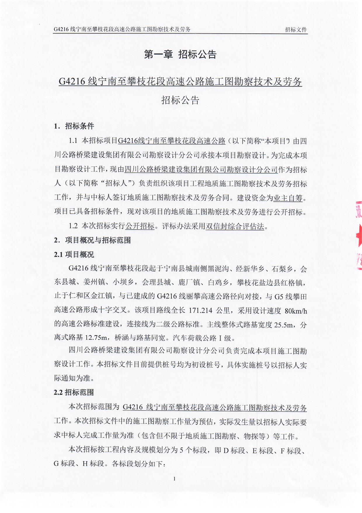 G4216線寧南至攀枝花段高速公路施工圖勘察招標公告