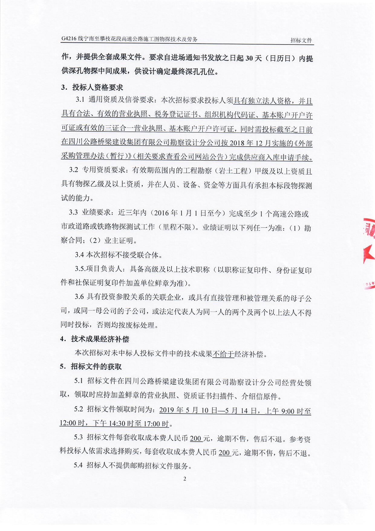 G4216線寧南至攀枝花段高速公路施工圖物探招標(biāo)公告