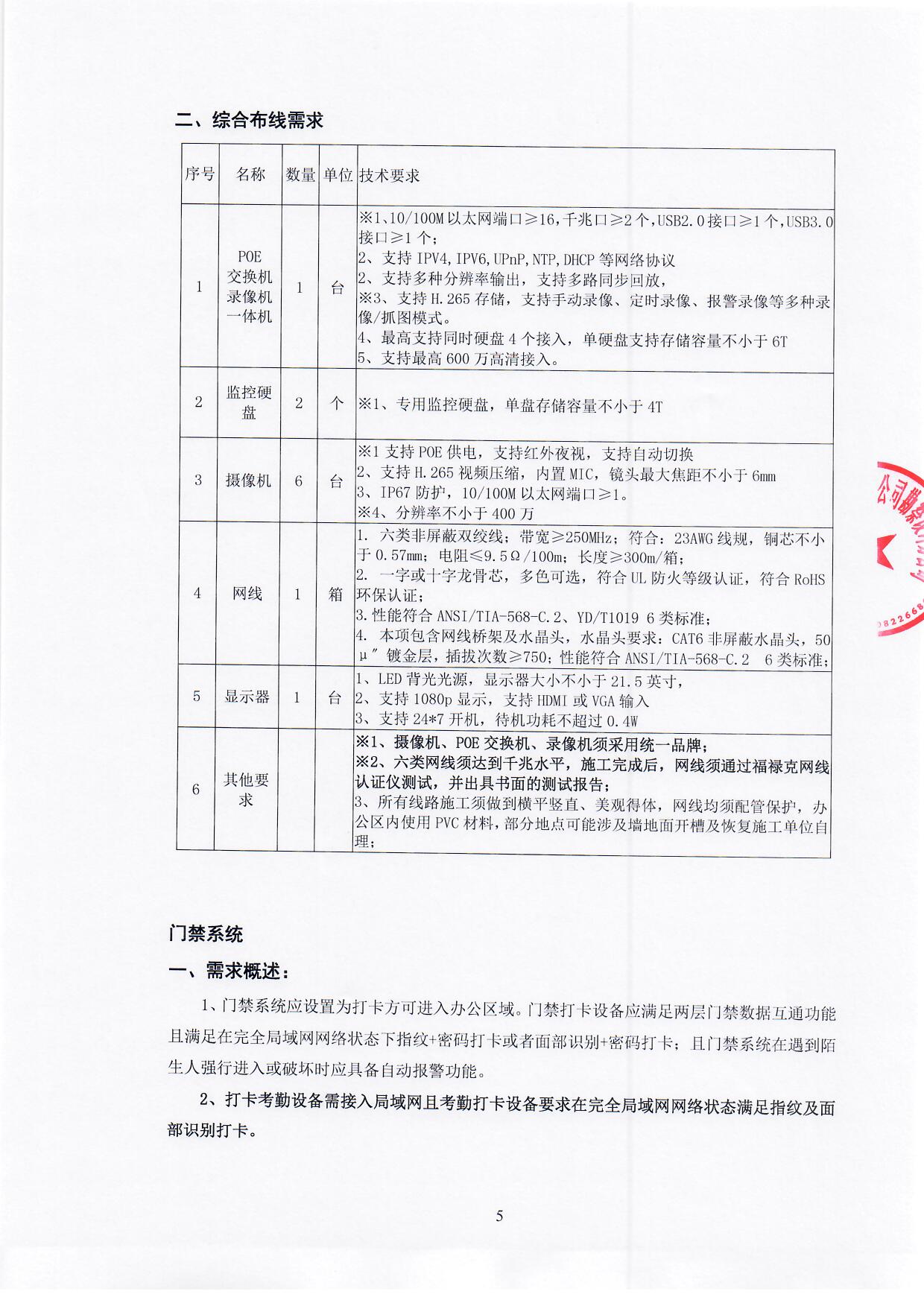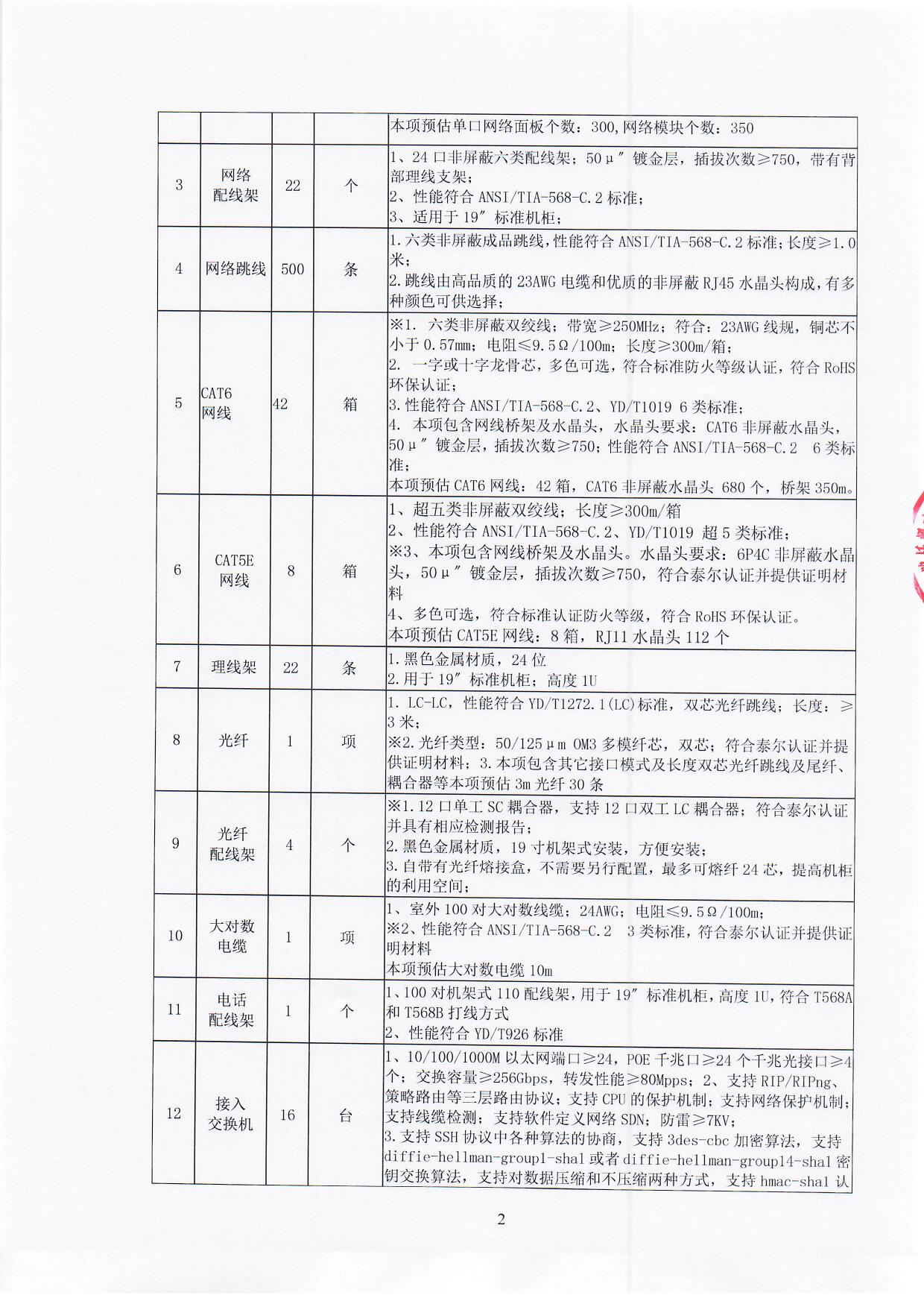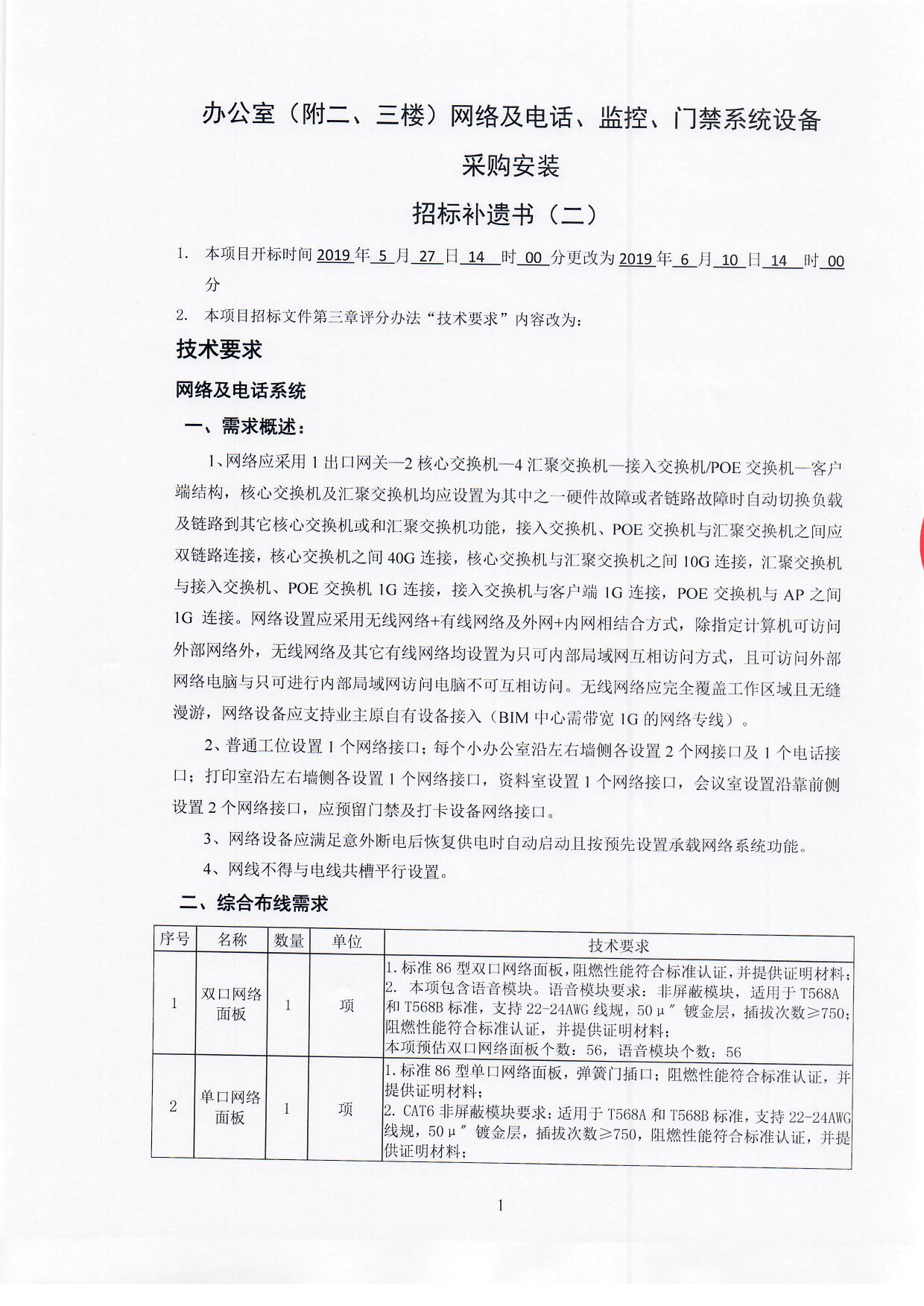 辦公室(附二、三樓)網(wǎng)絡(luò)及電話、監(jiān)控、門禁系統(tǒng)設(shè)備采購安裝招標(biāo)補遺書(二)