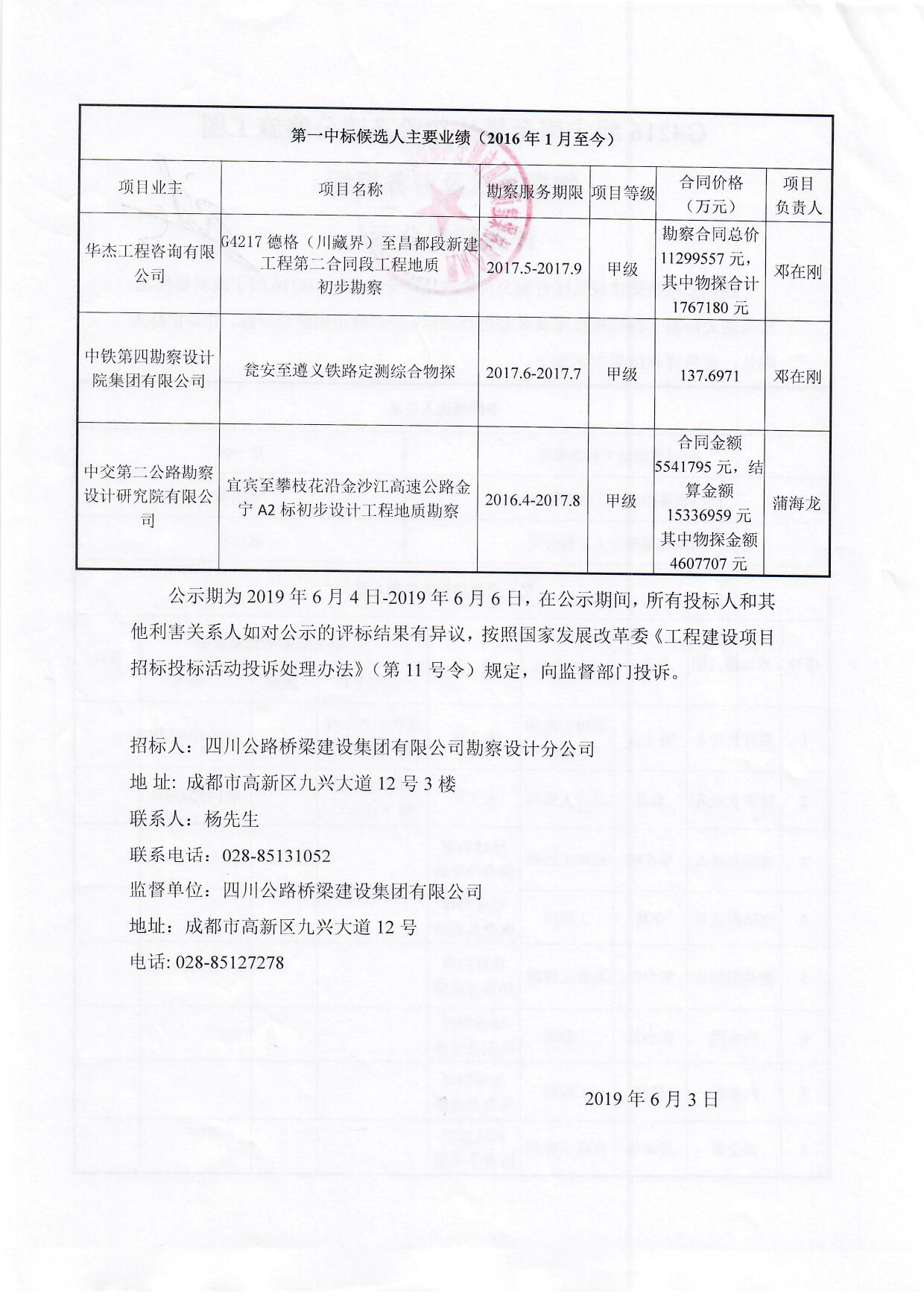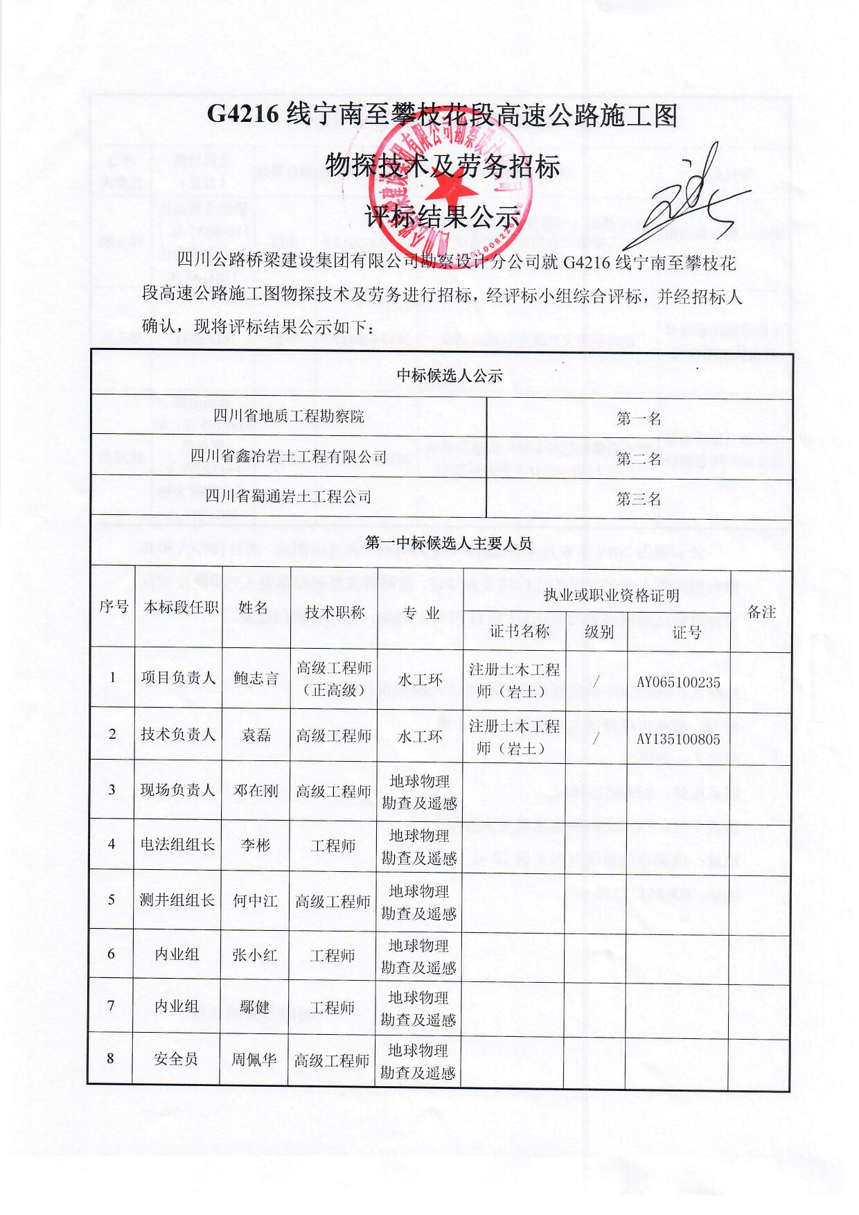 G4216線寧南至攀枝花段高速公路施工圖物探技術(shù)及勞務(wù)招標評標結(jié)果公示