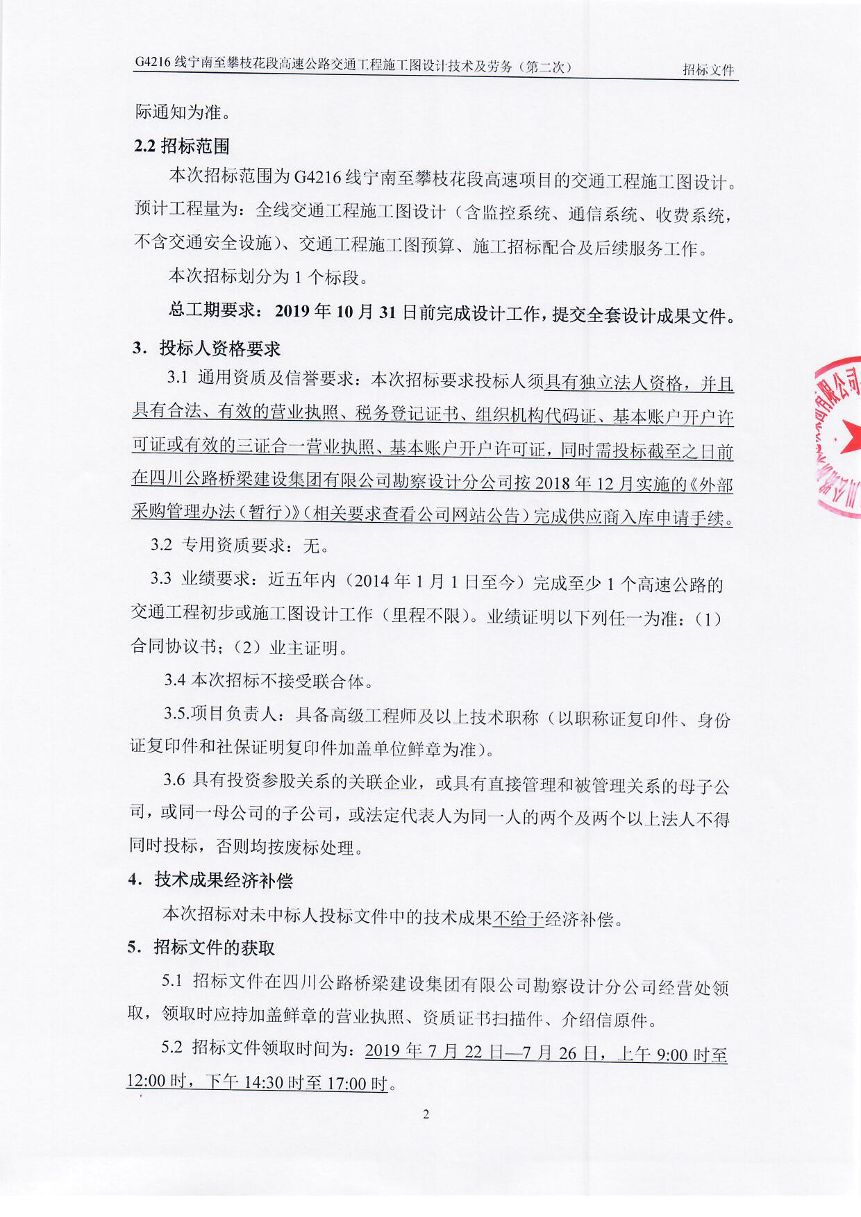 G4216線寧南至攀枝花段高速公路施工圖交通工程施工圖設(shè)計招標(biāo)文件(第二次)