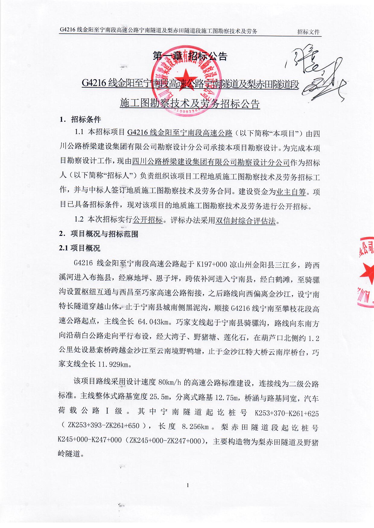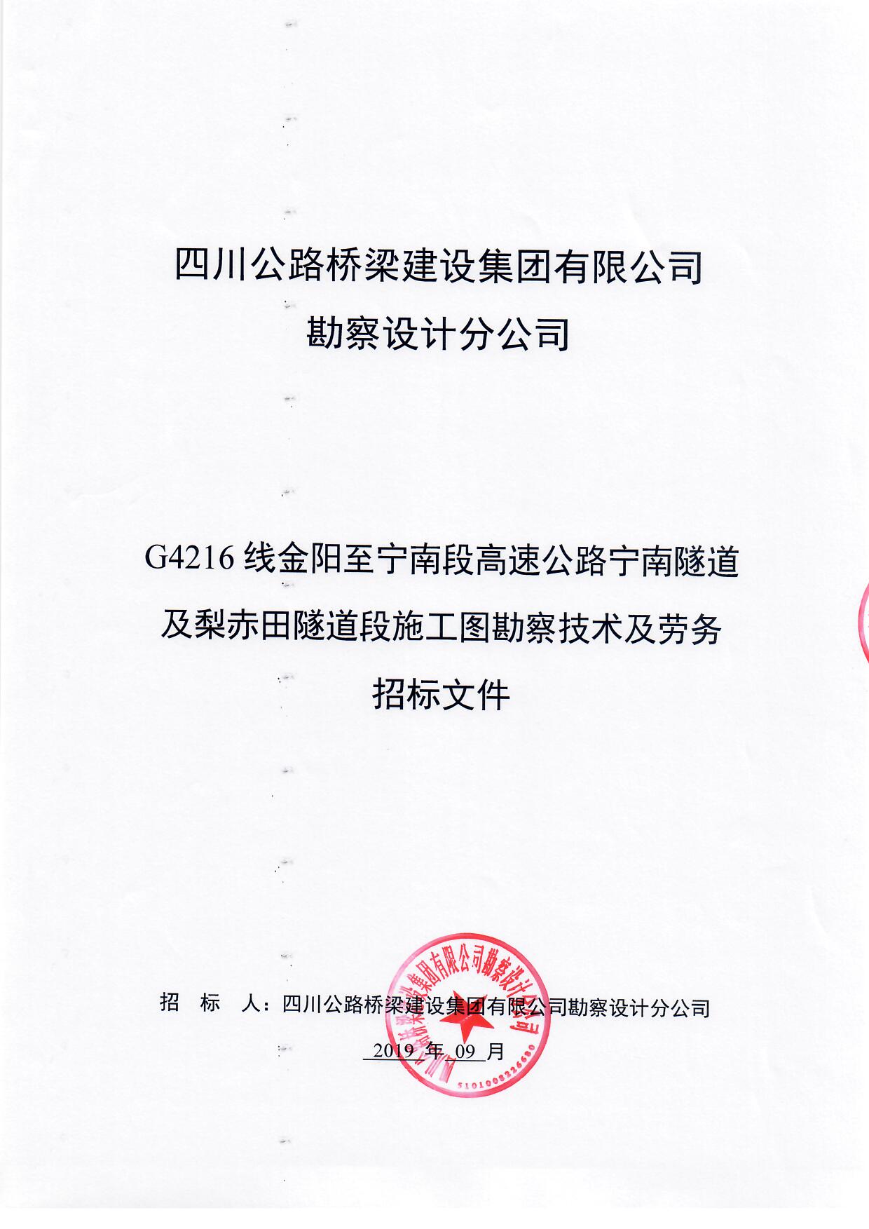 G4216線金陽(yáng)至寧南段高速公路寧南隧道及梨赤田隧道段施工圖勘察技術(shù)及勞務(wù)招標(biāo)公告