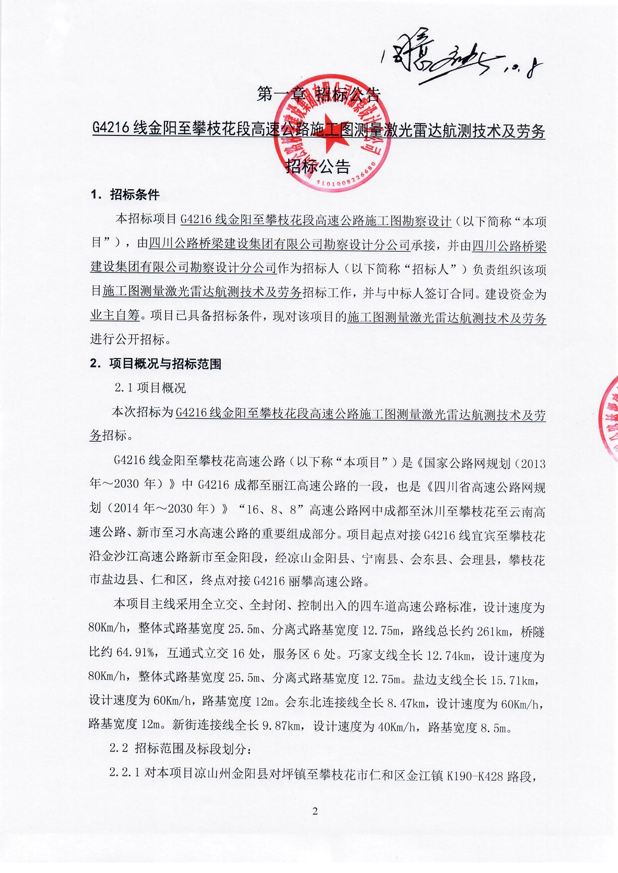 G4216線金陽至攀枝花段高速公路施工圖測量激光雷達(dá)航測技術(shù)及勞務(wù)招標(biāo)公告