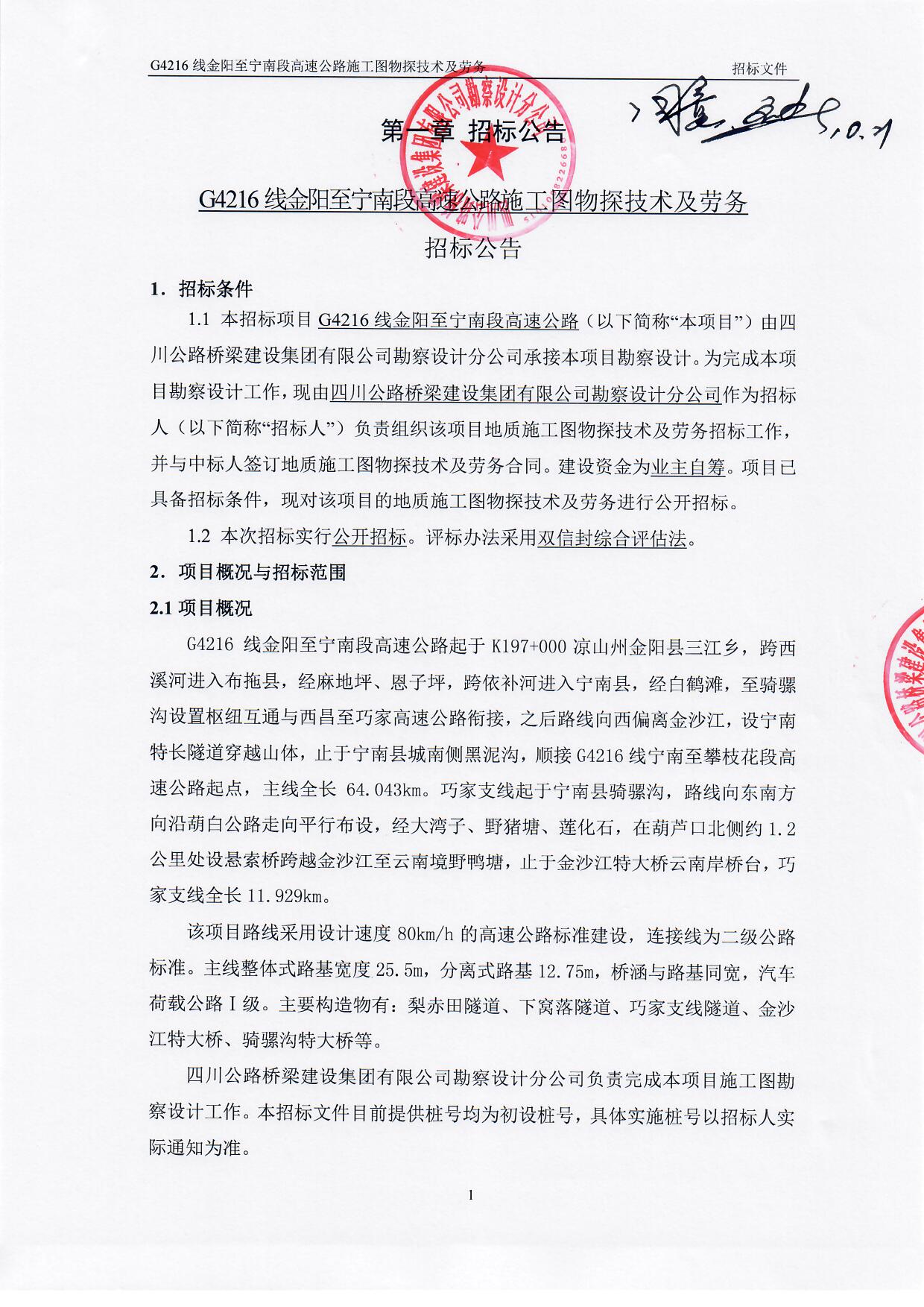 G4216線金陽(yáng)至寧南段高速公路施工圖物探技術(shù)及勞務(wù)招標(biāo)公告
