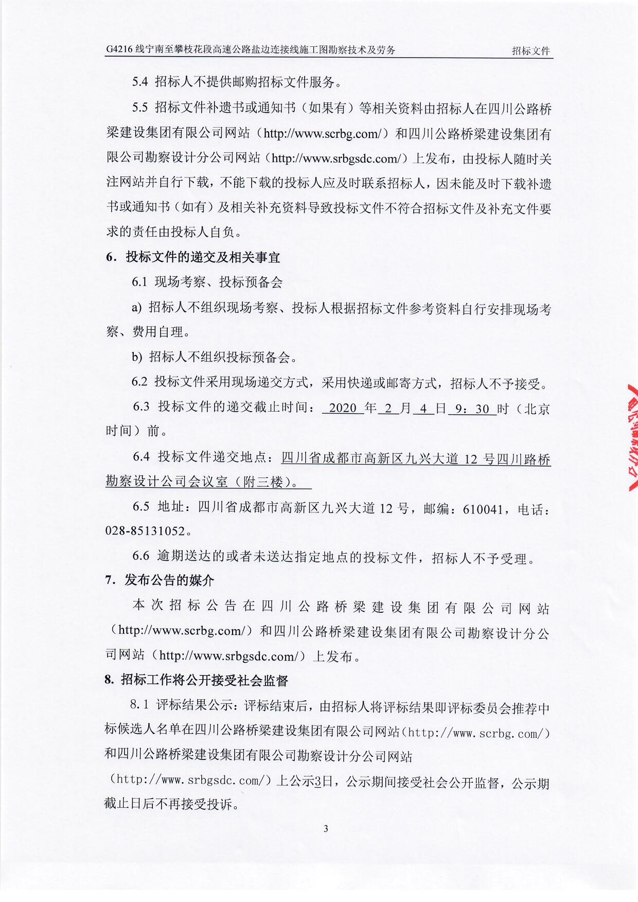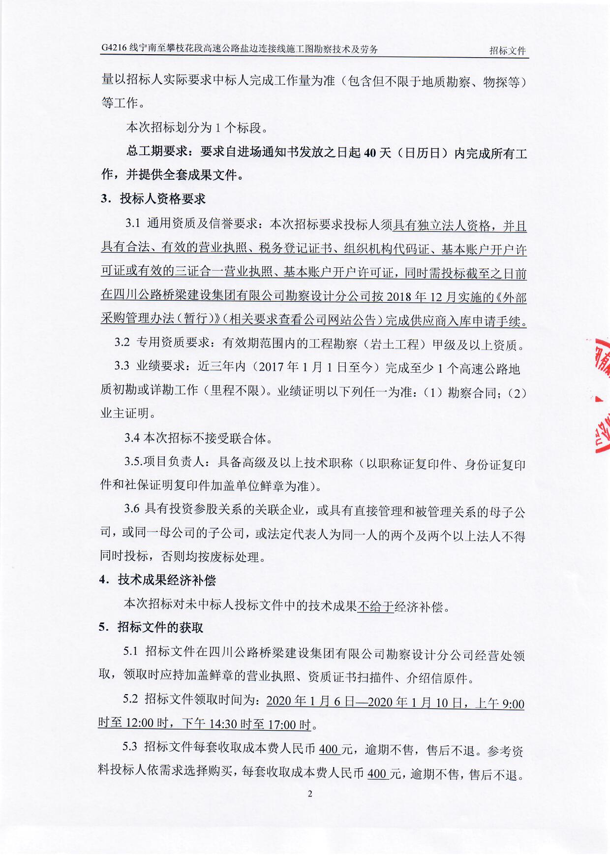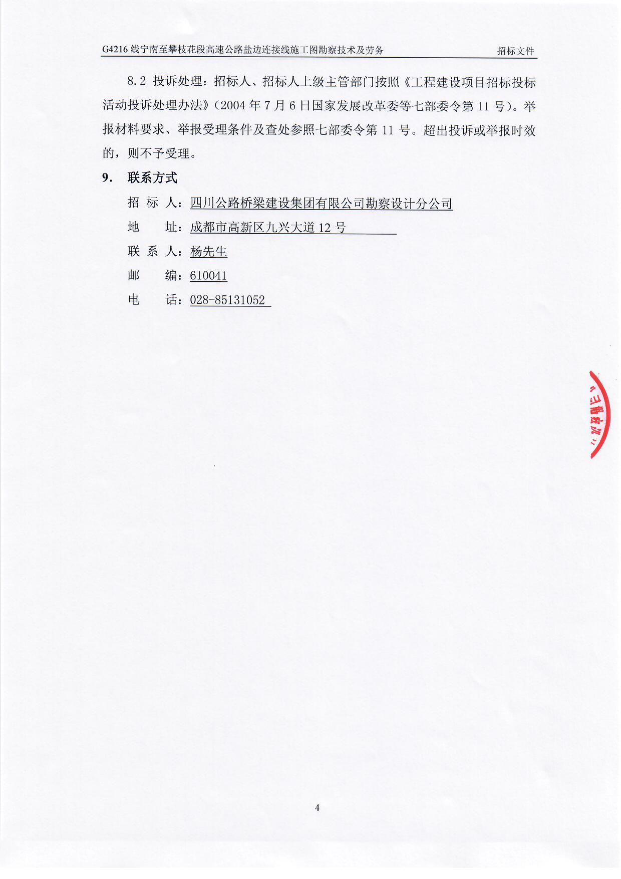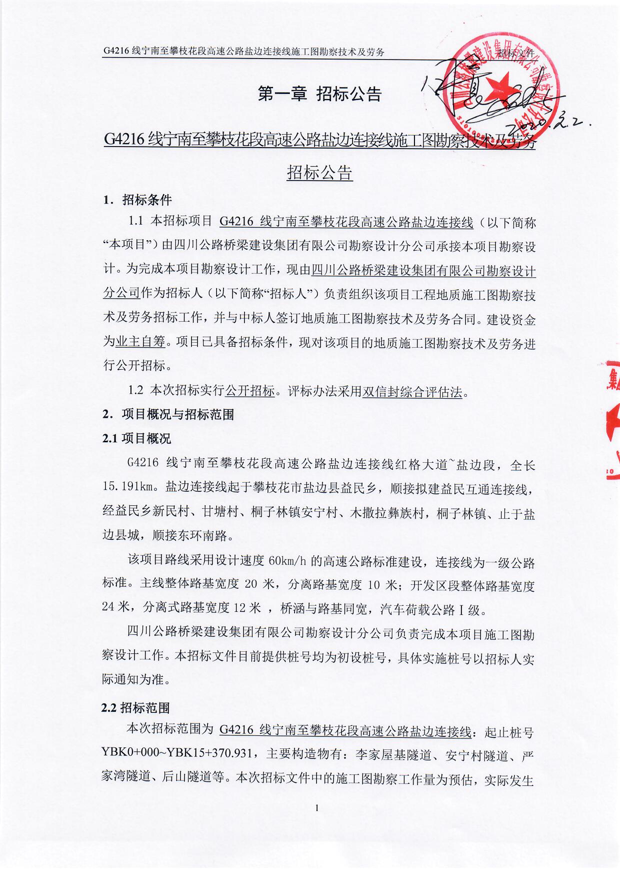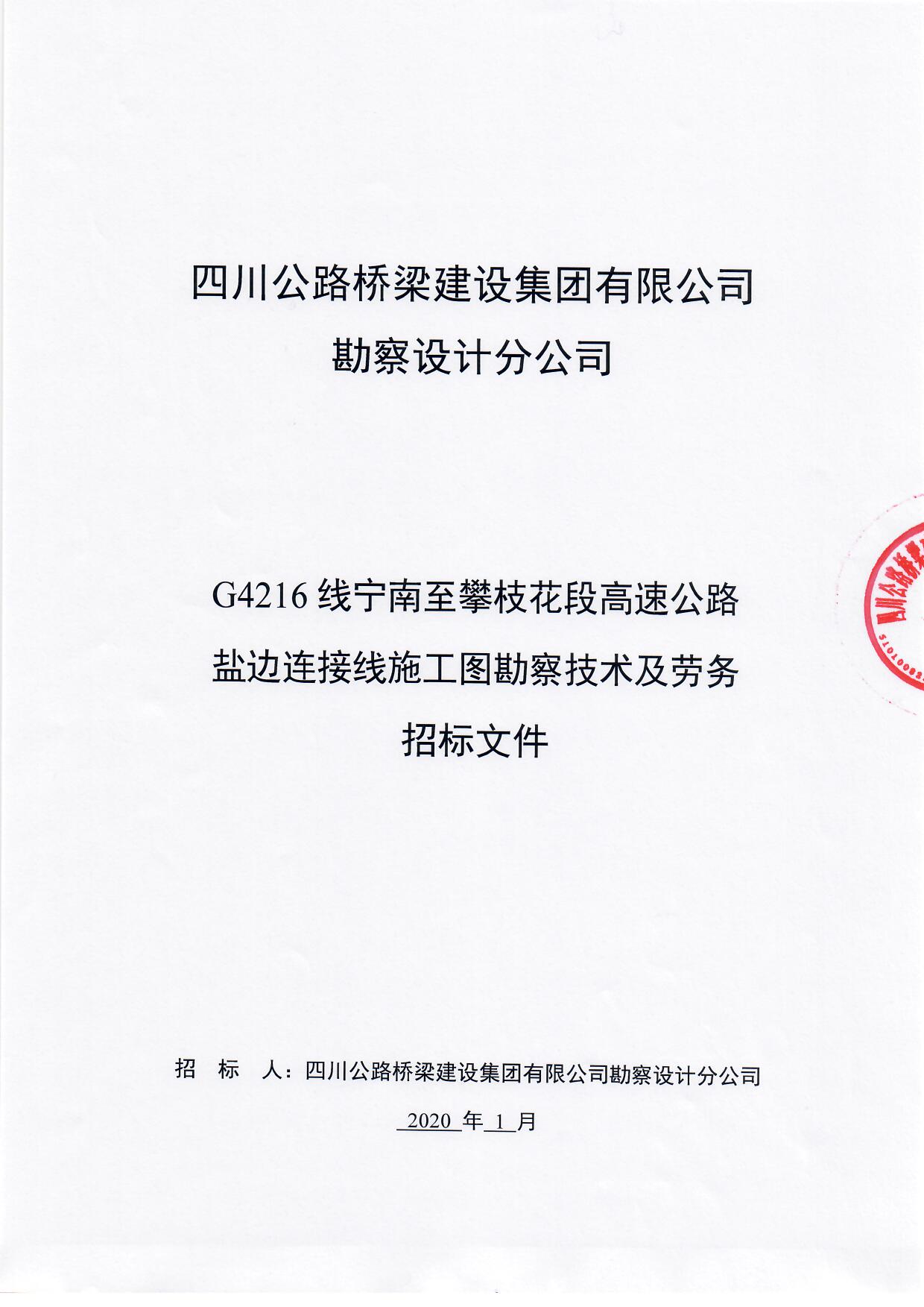 G4216線寧南至攀枝花段高速公路鹽邊連接線施工圖勘察技術(shù)及勞務(wù)招標(biāo)公告