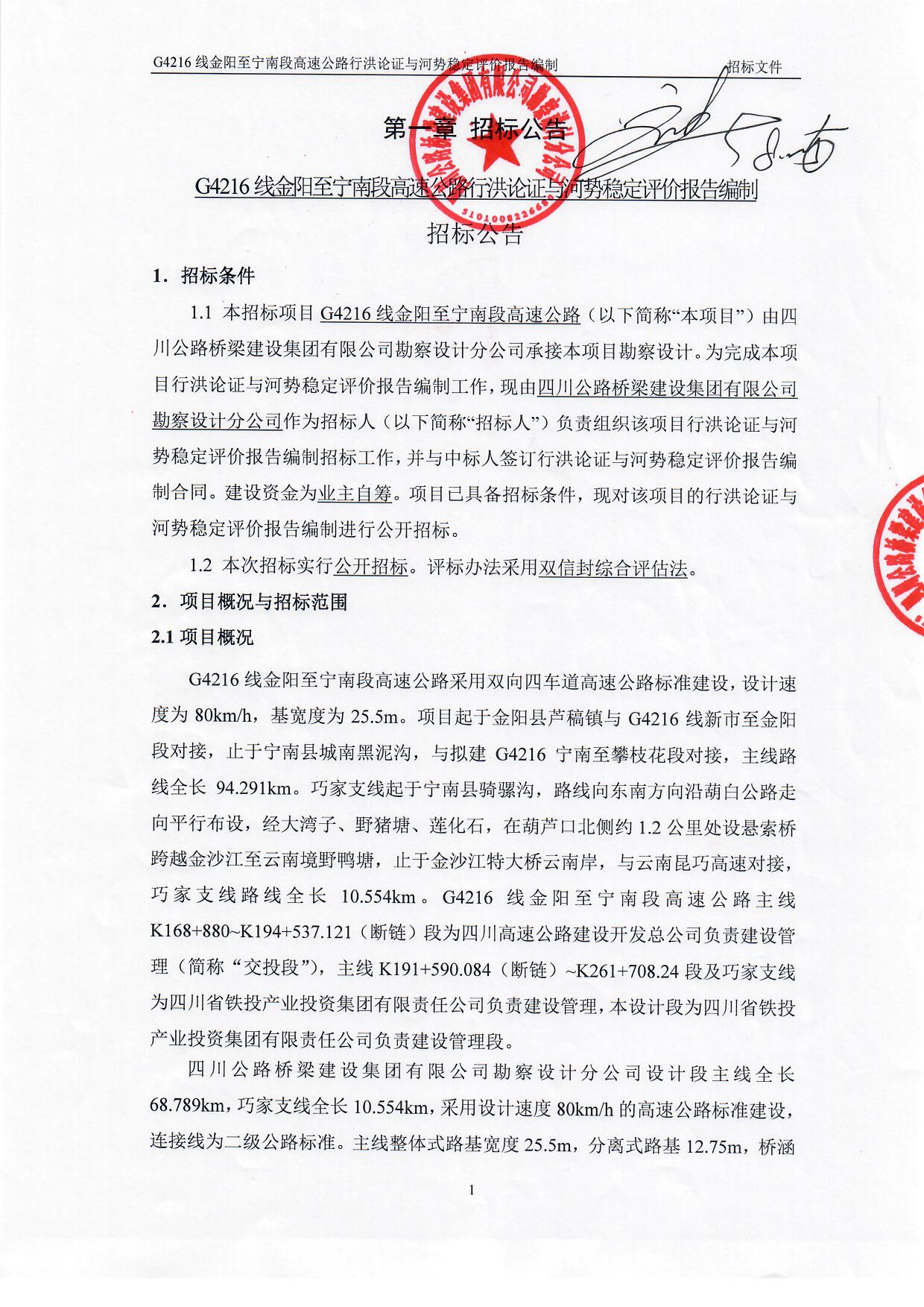 G4216線金陽至寧南段高速公路行洪論證與河勢穩(wěn)定評價報告編制招標(biāo)