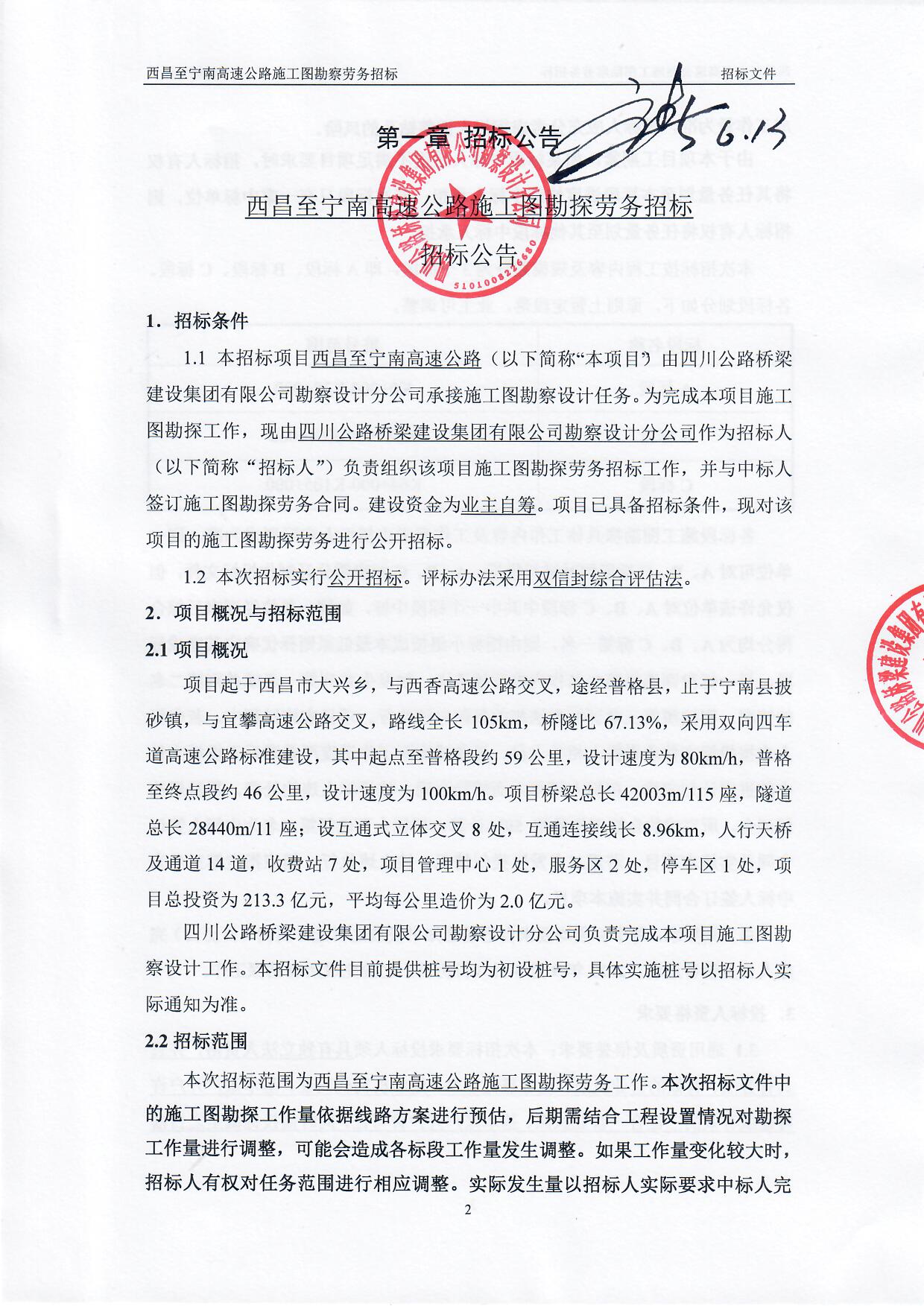 西昌至寧南高速公路施工圖勘探勞務(wù)招標(biāo)公告