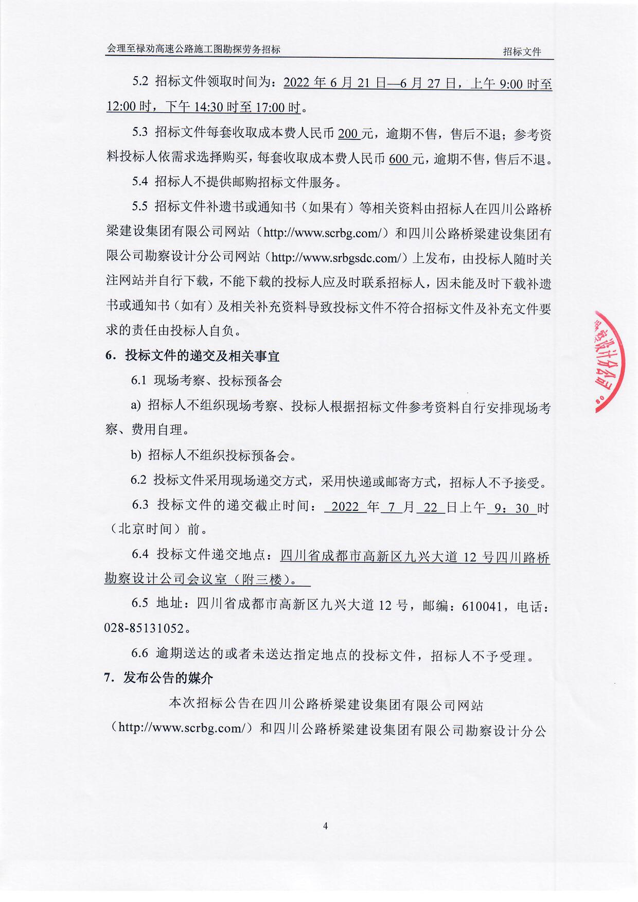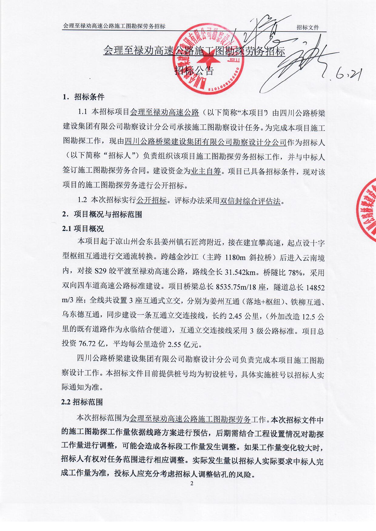 會理至祿勸高速公路施工圖勘察勞務招標公告