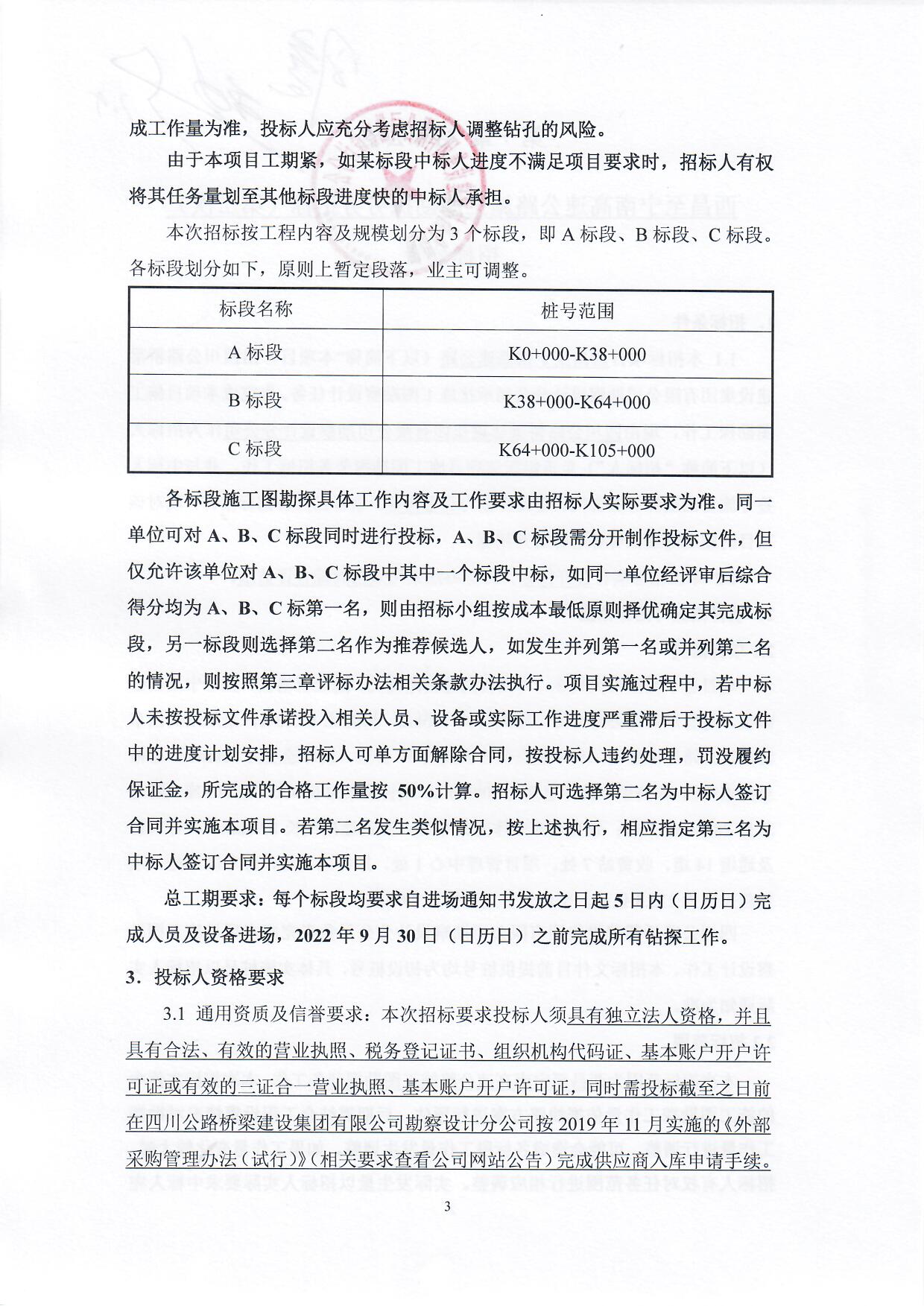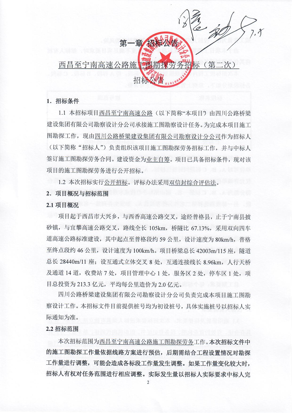 西昌至寧南高速公路施工圖勘探勞務(wù)招標(biāo)(第二次)