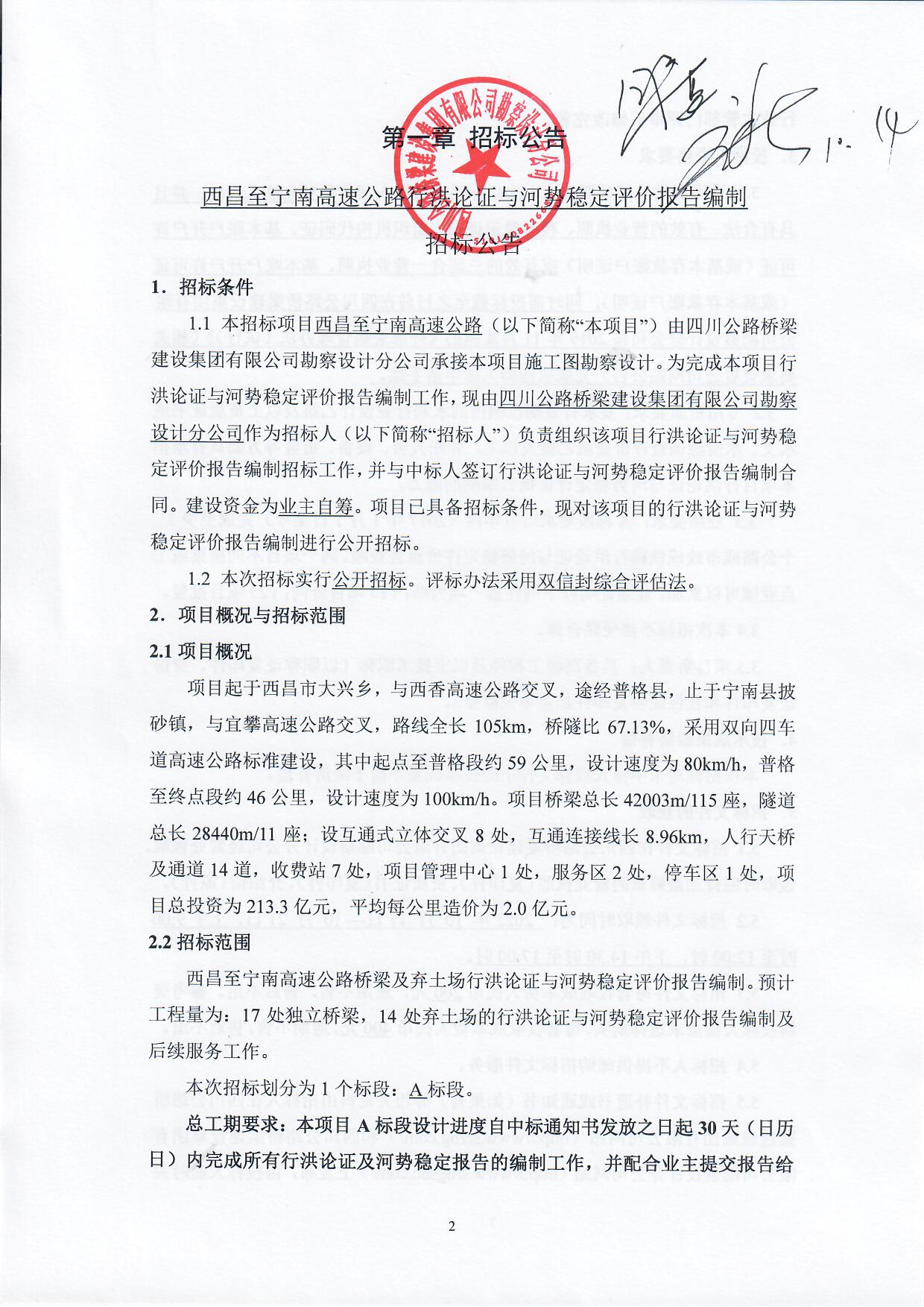 西昌至寧南高速公路行洪論證與河勢穩(wěn)定評價報告編制招標公告
