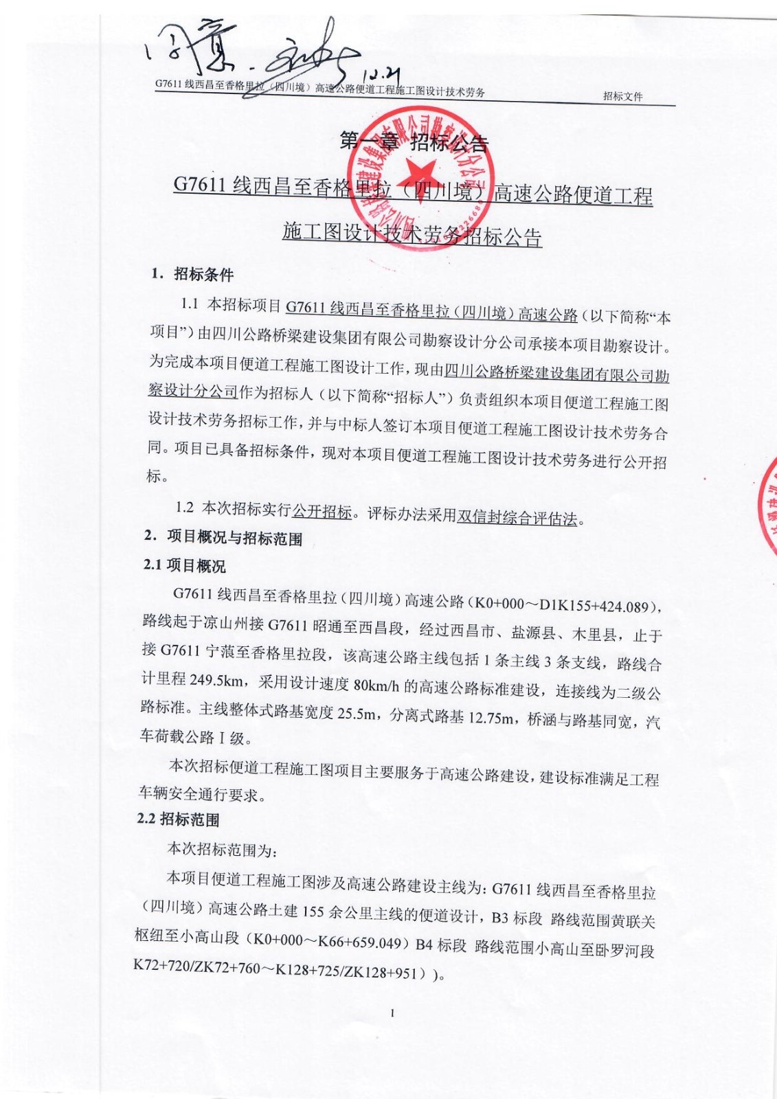 G7611線西昌至香格里拉(四川境)高速公路便道工程施工圖設(shè)計(jì)技術(shù)勞務(wù)招標(biāo)公告