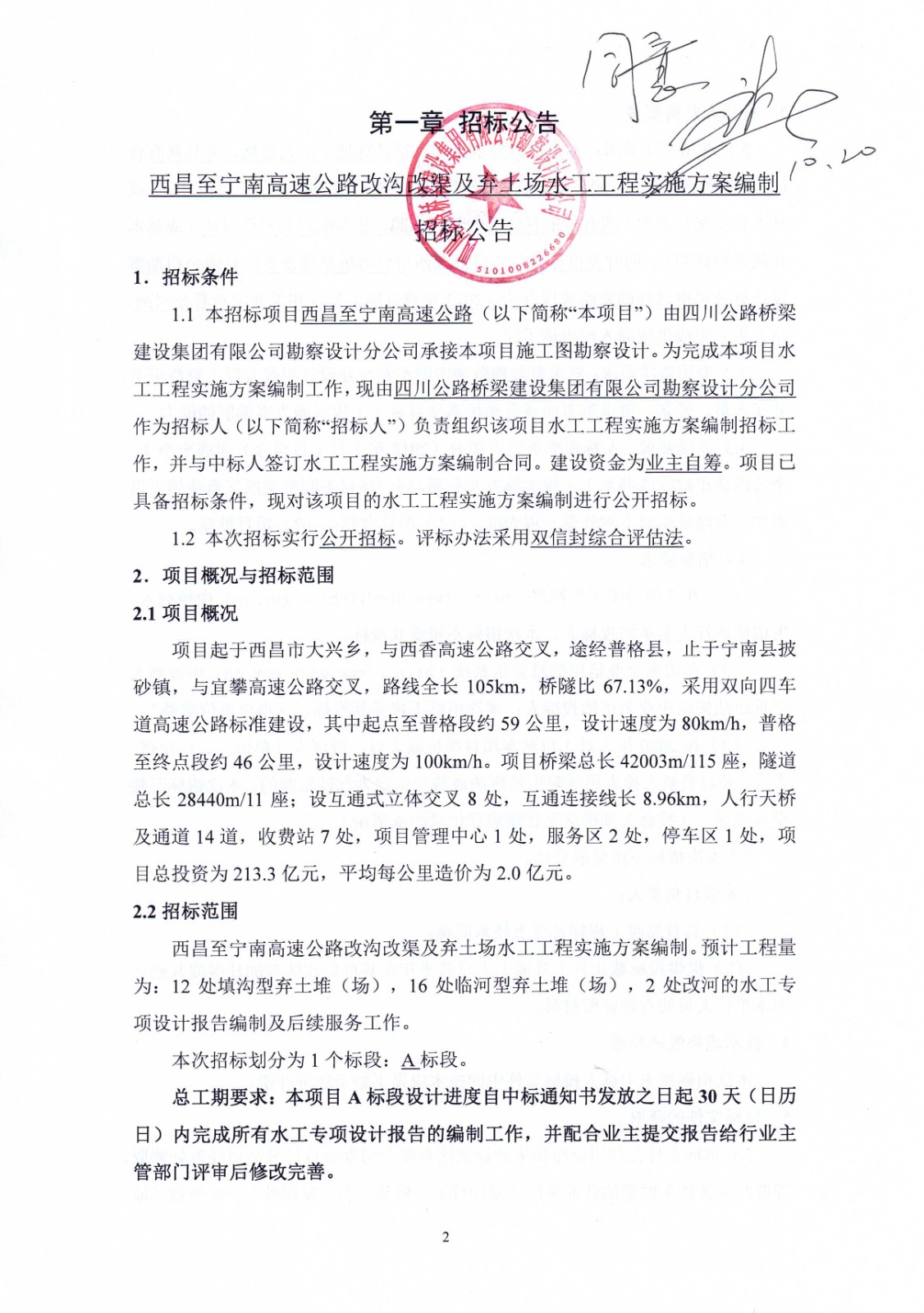 西昌至寧南高速公路改溝改渠及棄土場(chǎng)水工工程實(shí)施方案編制招標(biāo)公告