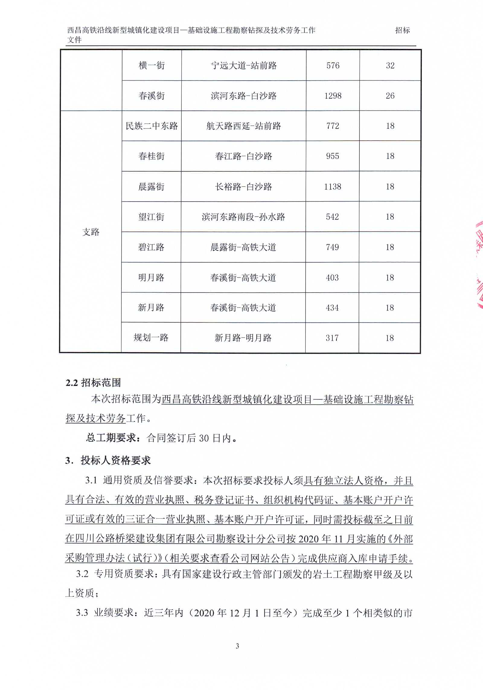 西昌高鐵沿線新型城鎮(zhèn)化建設(shè)項目—基礎(chǔ)設(shè)施工程勘察鉆探及技術(shù)勞務(wù)工作招標公告