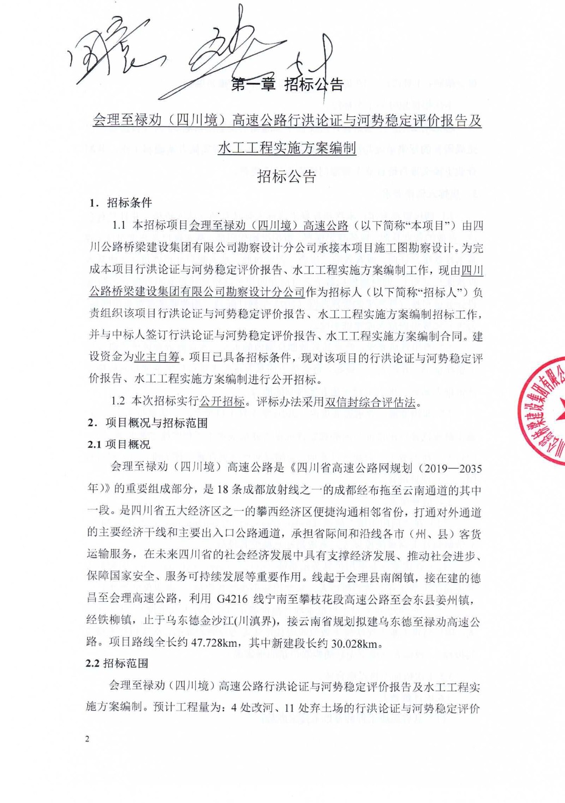 會理至祿勸(四川境) 高速公路行洪論證與河勢穩(wěn)定評價報告及水工工程實施方案編制