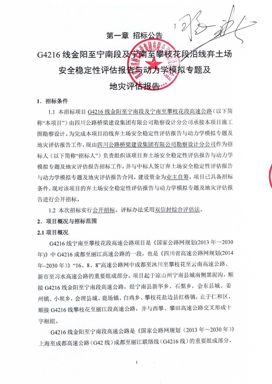 G4216線金陽至寧南段及寧南至攀枝花段沿線棄土場安全穩(wěn)定性評(píng)估報(bào)告與 動(dòng)力學(xué)模擬專題及地災(zāi)評(píng)估報(bào)告