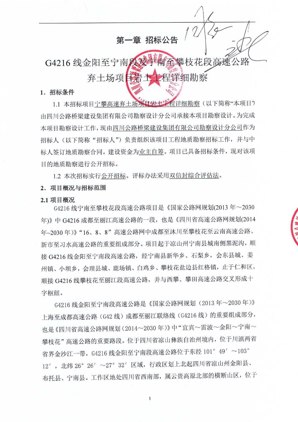 G4216線金陽至寧南段及寧南至攀枝花段高速公路棄土場(chǎng)項(xiàng)目巖土工程詳細(xì)勘察