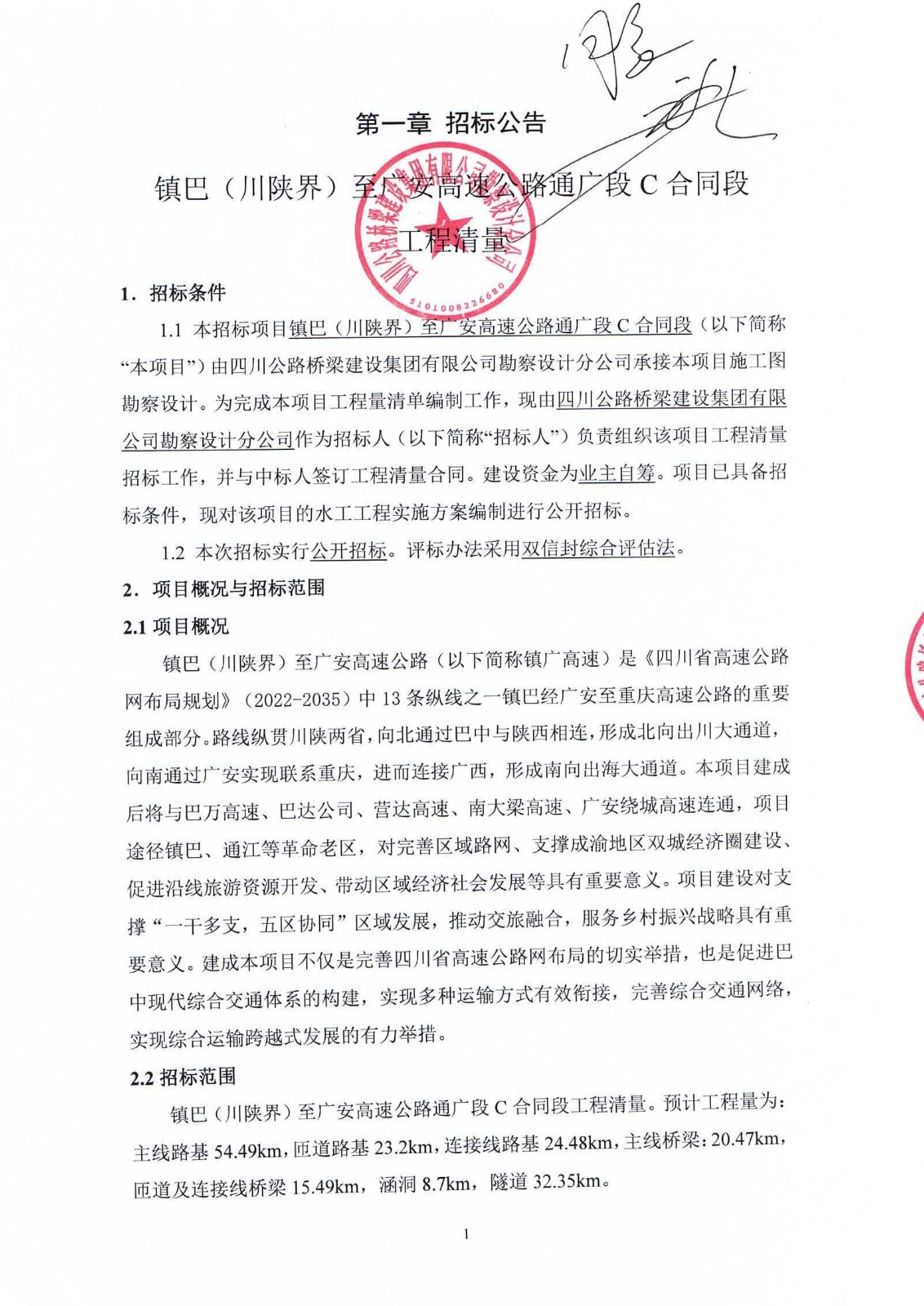 鎮(zhèn)巴(川陜界)至廣安高速公路通廣段C合同段工程清量